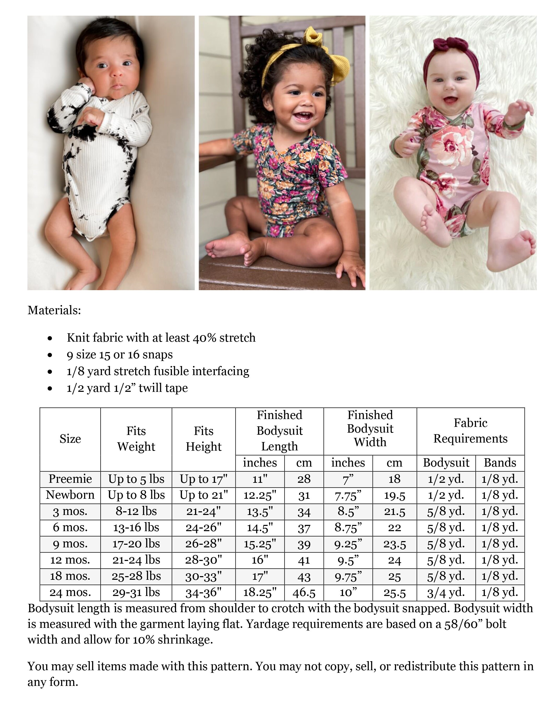Lullaby Line Side Snap Bodysuit Pattern Etsy